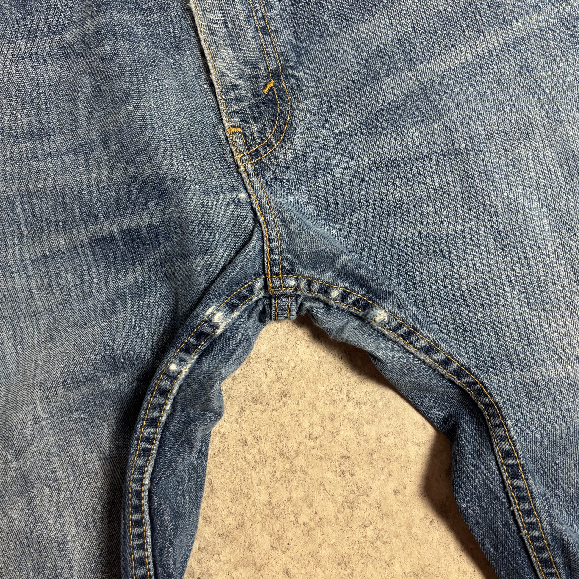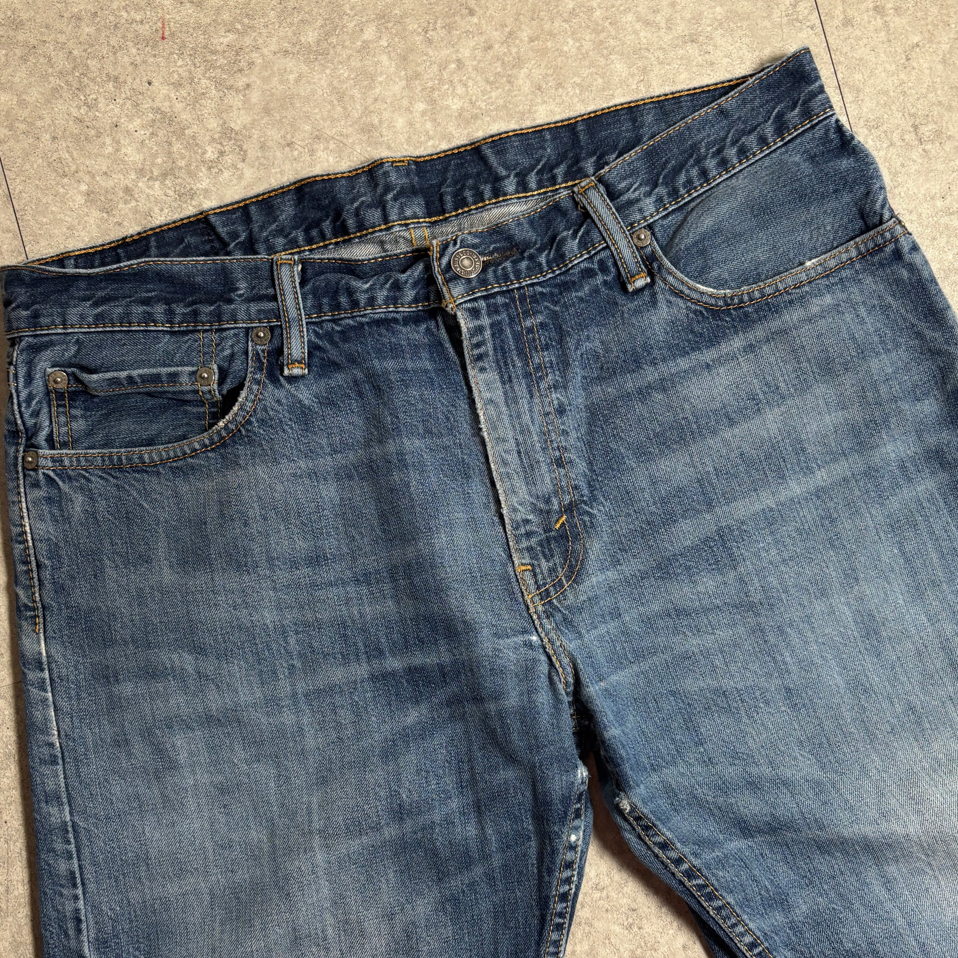 古着のデニムならではのフェードや複数の汚れ、ダメージがあり風合いを楽しんでいただけます。まだまだ穿いていただけます。
